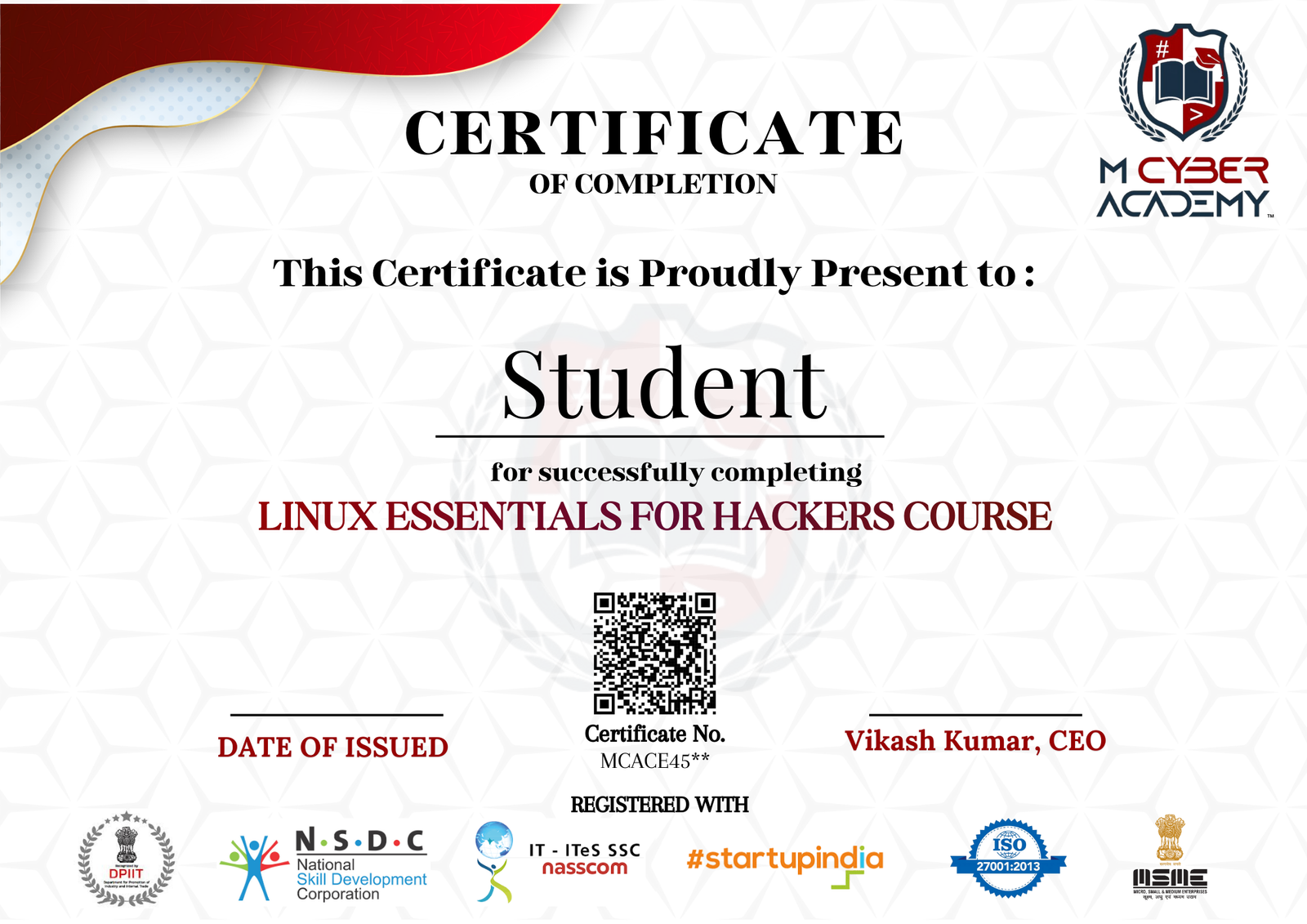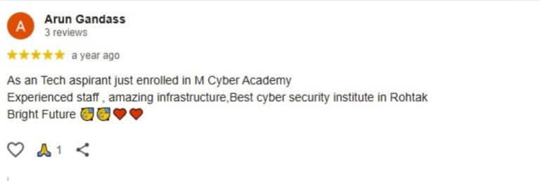 M Cyber Academy is India’s leading Ethical Hacking and Cybersecurity Training Institute. We empower learners with practical, hands-on training in Ethical Hacking, AI Security, Penetration Testing, and Digital Forensics. Our goal is to create the next generation of cybersecurity experts ready to secure the digital world.